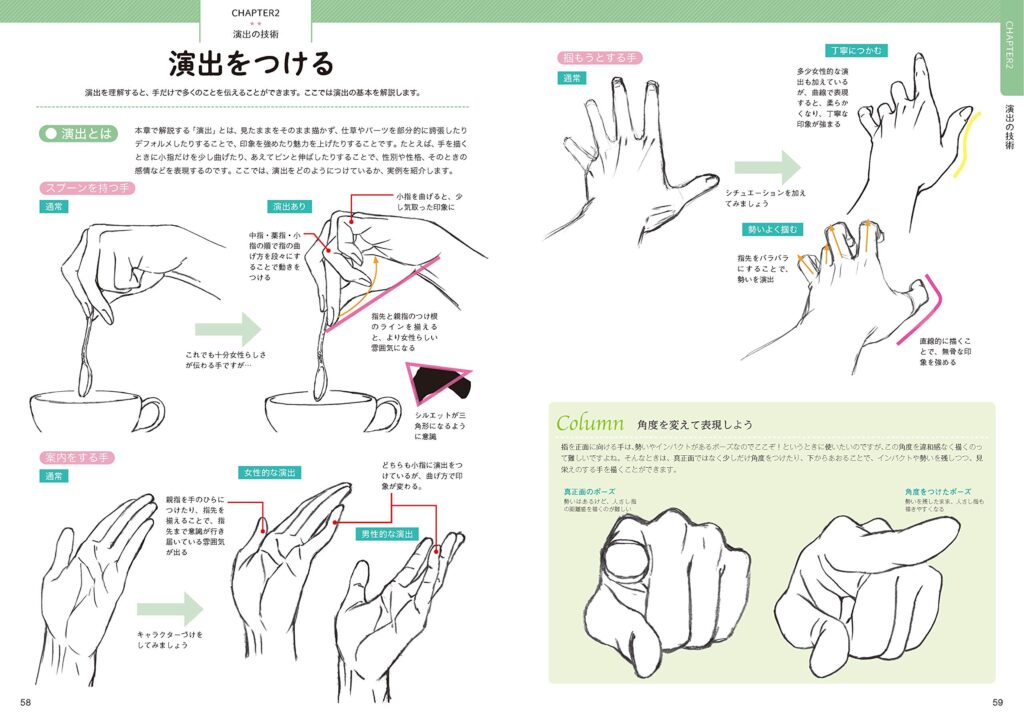 この本を読めば女性と男性の手を描き分けることもでき、デフォルメのやり方や立体感の付け方など目から鱗な情報がたくさんあります。